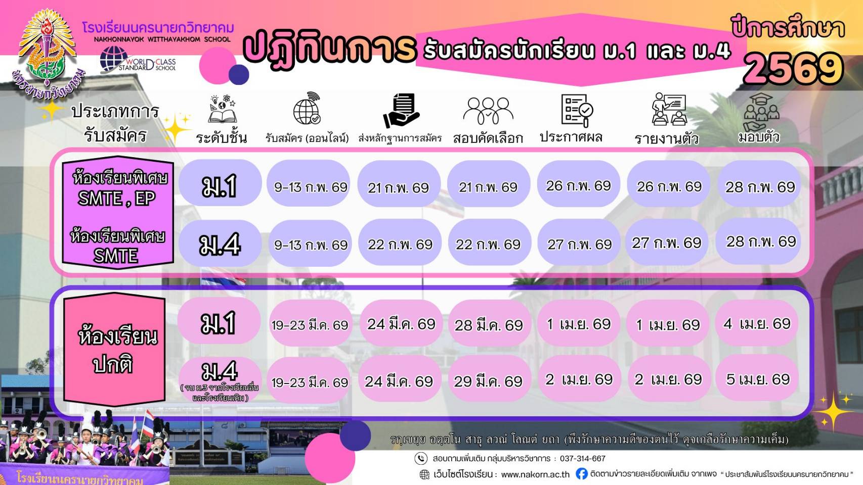 ประกาศรับสมัครนักเรียนใหม่ ม.1 และ ม.4 4 ประจำปีการศึกษา 2569